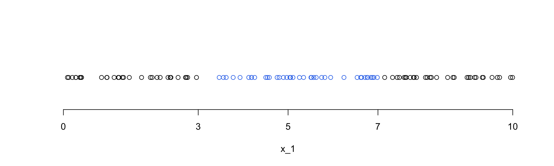We first generate 100 observations of the \(x_1\) variable which is uniformly distributed on [0,10].
